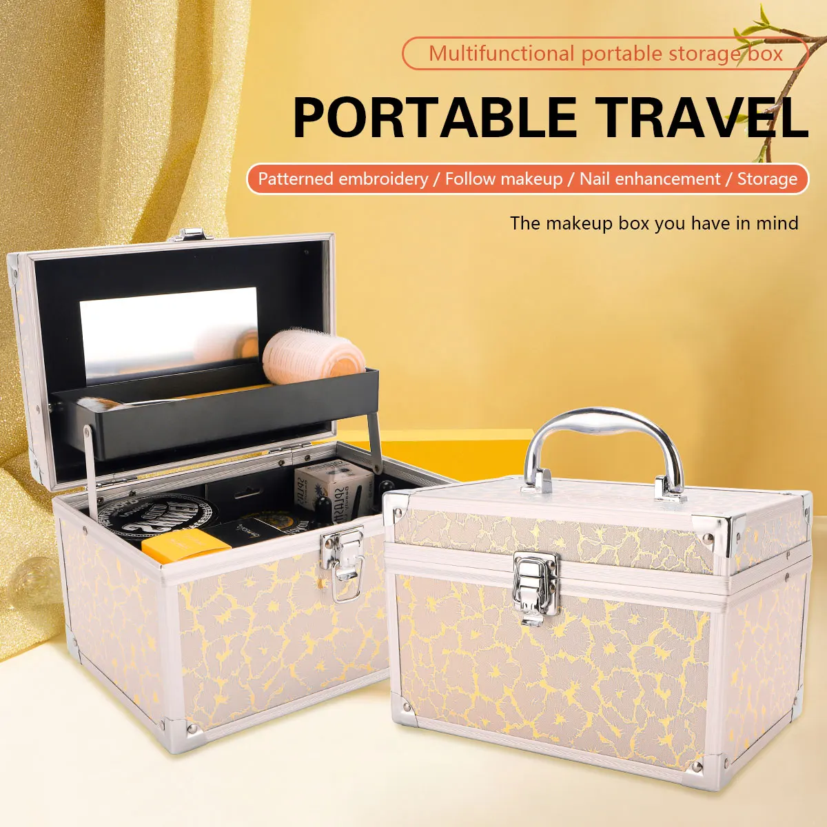 Small-Scale Portable Makeup Organizer Suitcase Make Up Tools Nail Storage Case Beauty Artist Travel Box Waterproof Supplies