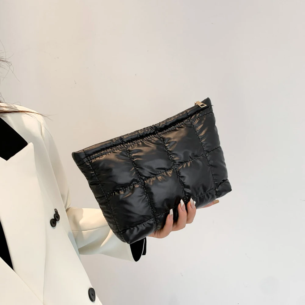 Women's Makeup Pouch Quilted Padded Cosmetic Pouch Puffer Cotton Ladies Storage Bags Down Checkered Fashion Clutch Bag Organizer